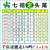 “七招定头尾”第2214期推荐版局规律,本期主攻16千位走第五步.