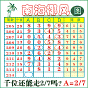 “南海椰风”第2214期推荐版局规律,本期千位27走三步.
