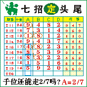 “七招定头尾”第2220期推荐版局规律,本期主攻27千位走第五步.