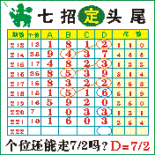 “七招定头尾”第2222期推荐版局规律,本期主攻72个位走第四步.