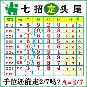 “七招定头尾”第2228期推荐版局规律,本期主攻27千位走第四步.