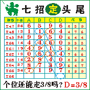 “七招定头尾”第2256期推荐版局规律,本期主攻38个位走第五步.
