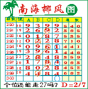 “南海椰风”第1300期推荐版局规律,本期个位27走三步.
