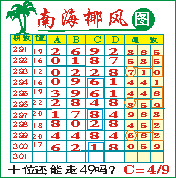“南海椰风”第1301期推荐版局规律,本期十位49走三步.