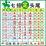 “七招定头尾”第1307期推荐版局规律,本期主攻49千位走第六步.