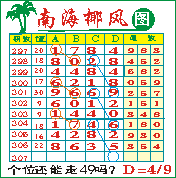 “南海椰风”第1307期推荐版局规律,本期个位49走三步.