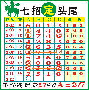 2,《七招定头尾》专栏命中十位051479,个位538491.