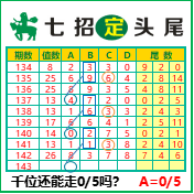 “七招定头尾”第3143期推荐版局规律,本期主攻05千位走第四步.