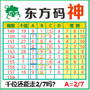 “东方码神”第3158期推荐此隔板规律,本期千位站“27”走第三步.