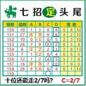 “七招定头尾”第3159期推荐版局规律,本期主攻27十位走第五步.