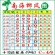 “南海椰风”第1323期推荐版局规律,本期十位49走三步.