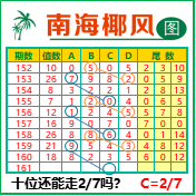“南海椰风”第3161期推荐版局规律,本期十位27走三步.