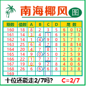 “南海椰风”第3169期推荐版局规律,本期十位27走三步.