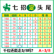 “七招定头尾”第3169期推荐版局规律,本期主攻38千位走第四步.