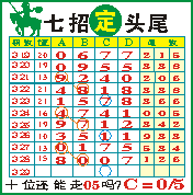 “七招定头尾”第1329期推荐版局规律,本期05十位走第三步.