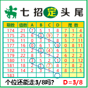 “七招定头尾”第3183期推荐版局规律,本期主攻38个位走第五步.