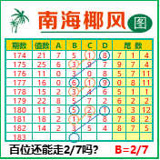 “南海椰风”第3183期推荐版局规律,本期百位27走三步.