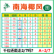 “南海椰风”第3186期推荐版局规律,本期千位27走三步.