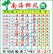 “南海椰风”第1332期推荐版局规律,本期百位27走三步.