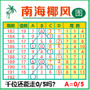 “南海椰风”第3192期推荐版局规律,本期千位05走三步.