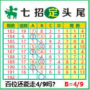 “七招定头尾”第3192期推荐版局规律,本期主攻49百位.