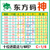 “东方码神”第3194期推荐此隔板规律,本期推荐十位16.